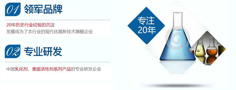 本公司依托淄博的化工區(qū)位優(yōu)勢(shì),掛靠大中專化工院校及科研單位,專心致力于非離子表面活性劑的開(kāi)發(fā)、應(yīng)用,是國(guó)內(nèi)較早從事研究、開(kāi)發(fā)、生產(chǎn)非離子表面活性劑的廠家之一,主要產(chǎn)品有:烷基酚聚氧乙烯醚(OP、NP、TX)系列、脂肪醇聚氧乙烯醚(AEO)系列、(平平加)系列、失水山梨醇脂肪酸酯聚氧乙烯醚(吐溫系列)、失水山梨醇脂肪酸酯(斯盤(pán)系列)、椰子油二乙醇酰胺(6501)、滲透劑系列、十二烷基苯磺酸、脂肪醇聚氧乙烯醚AES、油酸、三乙醇胺、椰油酰胺丙基甜菜堿CAB-35、聚醚系列、添加劑系列、聚乙二醇系列、乳化劑酯醚系列等等,產(chǎn)品遠(yuǎn)銷全國(guó)各個(gè)地區(qū),客戶上千余家,乳化劑在用戶中享有很高的聲譽(yù),市場(chǎng)占有率逐年攀升。近年來(lái),企業(yè)...